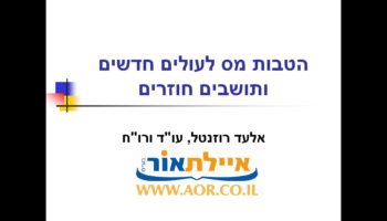 רו"ח יניב כהן - "ברצוני להודות לאיילת אור על סדרת ההרצאות המקצועיות כמעט בכל תחומי המיסוי. - אני מנוי לשירות המנויים להרצאות של איילת אור מזה כשנתיים,ומרוצה מכך שבכל תחום שאני רוצה... More →